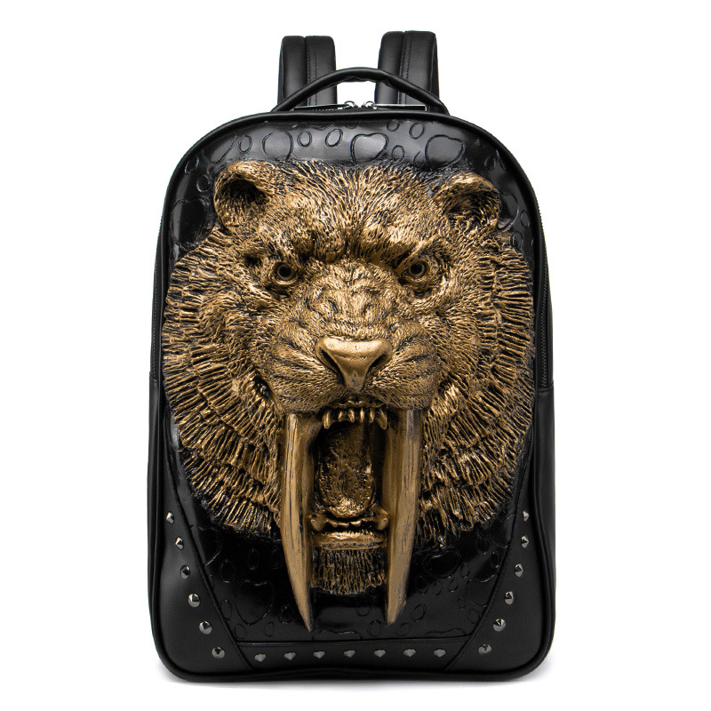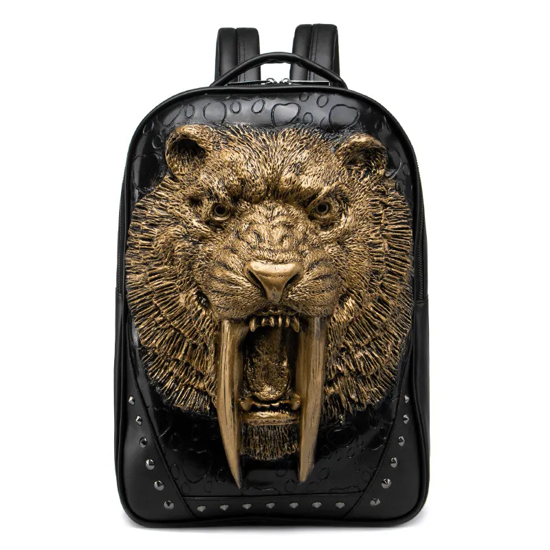 Its appearance is extremely striking. The front features a three - dimensional panther head as the core element. The panther opens its mouth wide, revealing sharp fangs, with bright and piercing eyes. The texture of its fur is exquisitely detailed, as if it's about to roar at any moment. Available in various colors such as silver, gold, and black, it caters to different aesthetic preferences. The backpack is made of high - quality materials, sturdy and durable. The rivet decorations at the bottom and edges add a punk style, highlighting individuality and unruliness.